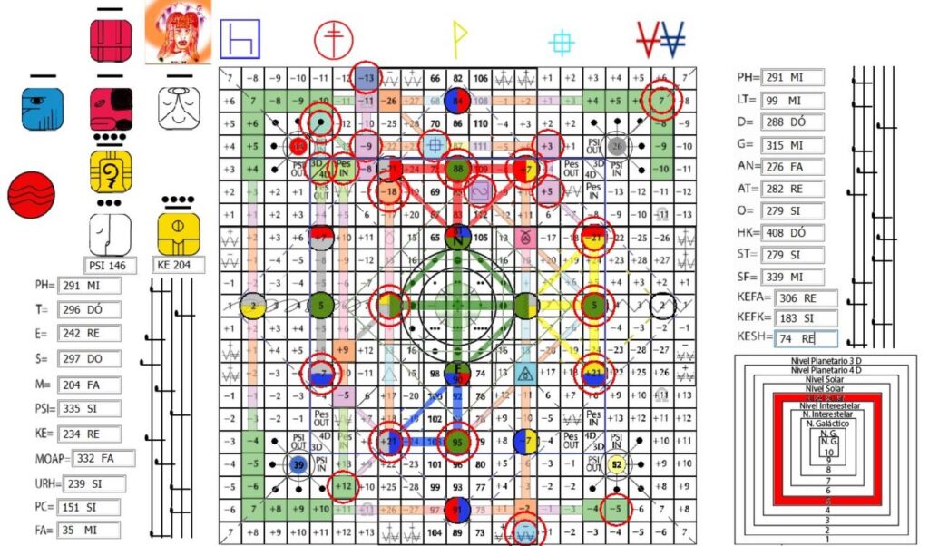5.9 Na Matriz do Tempo (no centro das 9 unidades do núcleo radial dos sentidos) estão as “quatro unidades mestras do tempo”, localizadas nas Quatro Dimensões do Tempo Exterior: Criação Cósmica (13), UMB 245, Ascensão Cósmica (26), UMB 231, Sincronização Cósmica (39), UMB 259, e Cubo Cósmico (52), UMB 217.