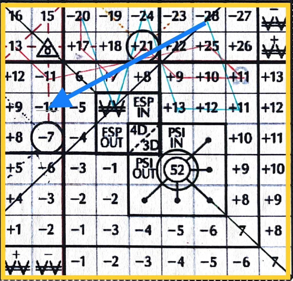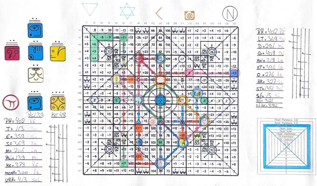 A Matriz do E (espaço), V. 14, H. 16. UMB 359. (-10) Décima magnitude do fluxo do espaço externo sublima o hiperplasma Beta-Beta do Cubo Cósmico (na 4ª dimensão do tempo exterior). Campo de força da mediunidade do consciente desperto (4D) sublimado pelo campo de força do Perceptor Holomental radializado radiosônicamente (8D): Comando Harmônico Ascendente.