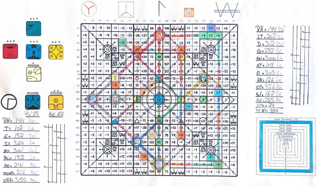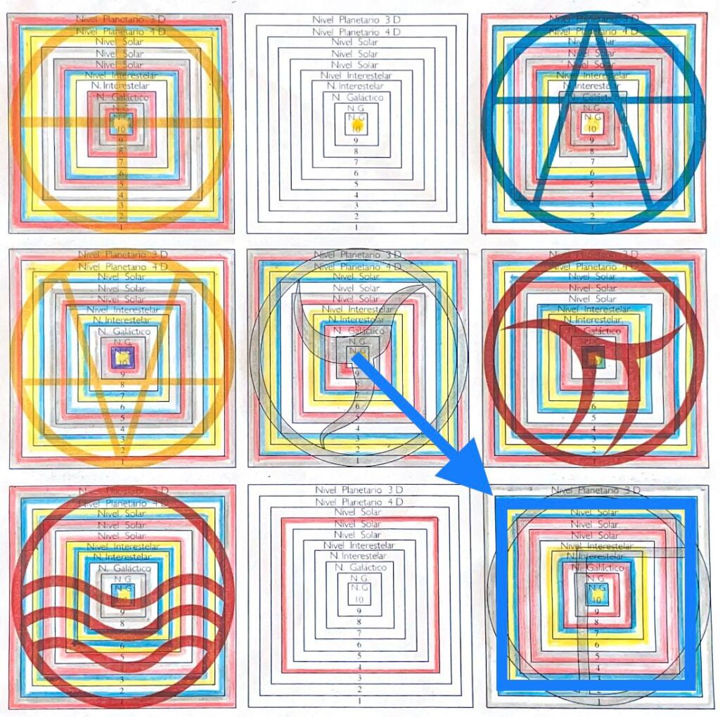 A Matriz S (syncronica), V. 15, H. 12. UMB 364. (-7) Sétima magnitude Unidade transformadora de isolamentodo campo de força lumínico Duar azul sublima a 6ª esfera mental: consciente Subliminar.