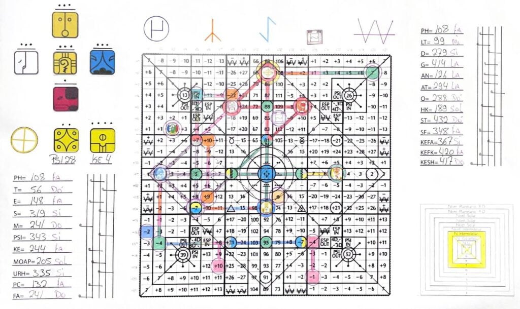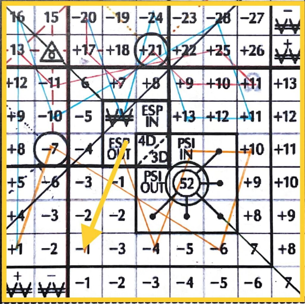 A Matriz do T (tempo), V.1, H.16. UMB 56. (-2) Segunda magnitude sublima a Estabilização Lunar do fluxo do tempo externo da Sincronização Cósmica. A Matriz do E (espaço), V.15, H.20. UMB 148. (-1) Primeira magnitude do circuito PES 6º dimensional sublimal da comunicação subliminal no campo de força Beta-Beta da mediunidade do consciente desperto. A mediunidade do consciente desperto sublima a terceira esfera mental: consciente.