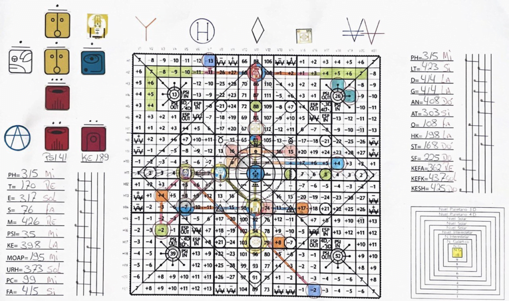 A Matriz do E (espaço), V. 13, H. 17. UMB 317. (+8) Oitava magnitude do fluxo do espaço externo. Ativa o hiperplasma Beta-Beta do Cubo Cósmico (na 4ª dimensão do tempo exterior). Campo de força da mediunidade do consciente desperto (4D) ativado pelo campo de força do Perceptor Holomental radializado radiosônicamente (8D): Comando Harmônico Ascendente.
