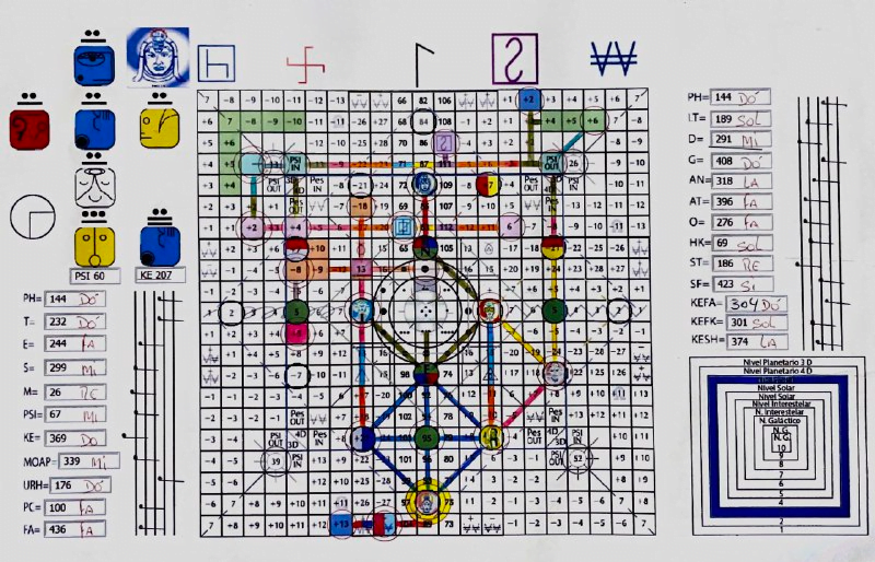 A Matriz S (syncronica),V.5, H.7. UMB 299. (+4) Quarta magnitude do circuito PES 6º Dimensional Ativa a comunicação subliminal no campo de força Alfa-Alfa do samadhi profundo. O samadhi profundo ativa a primeira esfera mental: pré-consciente.