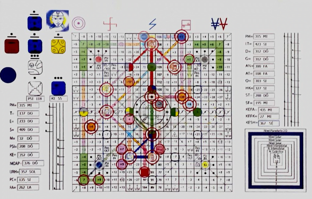 V. 8, H. 12. UMB 409. (+) Unidade Ativadora do Terminal eletroativador Kuali vermelho (tempo radial direito). Ativa o campo de força térmico Kuali vermelho e a corrente elétrica azul Ascendente na Nona Dimensão do Tempo (Núcleo do Tempo Interior), Sétima esfera mental: Perceptor Holomental.