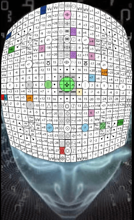 A Matriz do E (espaço), V.15, H.15. UMB 361. (6) Sexta magnitude do circuito PES 6º dimensional neutraliza a comunicação subliminal no campo de força Beta-Beta da mediunidade do consciente desperto. A mediunidade do consciente desperto neutraliza a Terceira esfera mental: consciente. Sexta magnitude contem o coordenador interno do vermelho (PES 6º dimensional do tempo externo do canal Beta-Beta. Sétima porta da Primeira diagonal de Unidade.