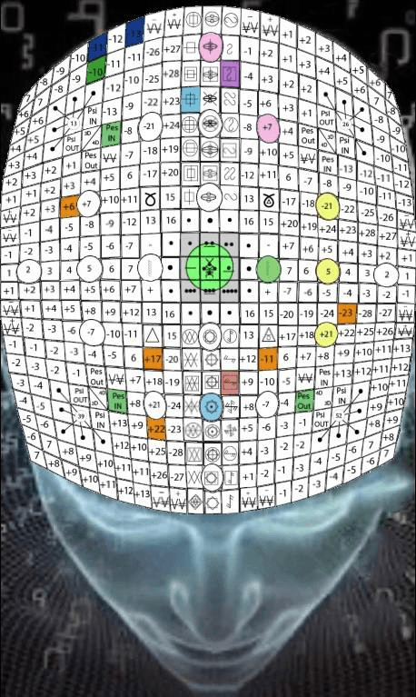 A Matriz S (syncrônica), V.6, H.5. UMB 296. Unidade de Entrada PES do canal do núcleo intergaláctico Alfa-Alfa da Criação Cósmica: campo de força do samadhi profundo. Conecta o canal Alfa-Alfa com impulsos subliminares a partir de o fluxo PES 6º Dimensional. Informada pela magnitude décima terceira do circuito coordenador de quinta força da Criação Cósmica.