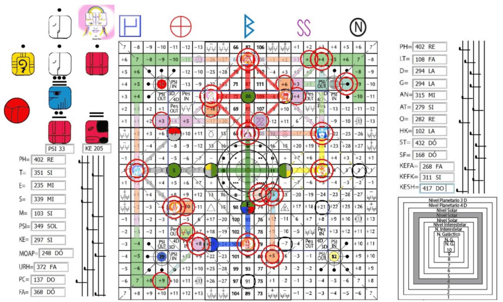 O KE (KIN equivalente), V.15, H.5. UMB 287. (+4) Quarta magnitude do circuito PES 6º dimensional. Ativa a comunicação subliminal no campo de força Beta-Alfa do controle da mente superior. O controle da mente superior ativa a Quarta esfera mental: conscienteContínuo.