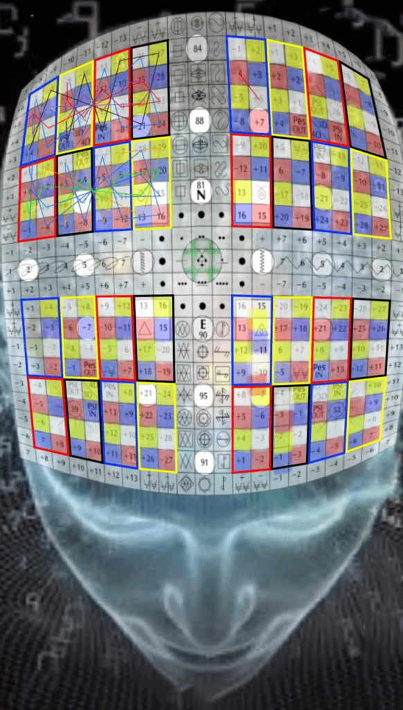 A Matriz do T (tempo), V.6, H.16. UMB 351. Canal do núcleo intergaláctico do hiperplasma Alfa-Beta. Ativa os códigos da Sincronização Cósmica. O canal do núcleo Alfa-Beta se coordena com as unidades de Saída PES e Entrada PES para criar um fluxo ativo. A informação subliminal e sensorial são recebidas (entrada), logo processadas nos campos psi antes de ser transmitidas (Saída). O canal do núcleo Alfa-Beta governa o campo de força do samadhi informativo e coordena o fluxo da ativação da segunda esfera mental: subconsciente. Sexta porta da Quarta diagonal de Unidade.