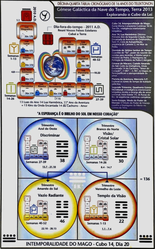 O PSI Crono,V. 6, H. 14. UMB 349. (-10) Décima magnitude do fluxo do tempo externo sublima o hiperplasma Alfa-Beta da Sincronização Cósmica (na 3ª dimensão do tempo exterior). Campo de força do samadhi informativo (3D) sublimado pelo campo de força térmico Kuali vermelhoda paranormalidade superconsciente (5D).
