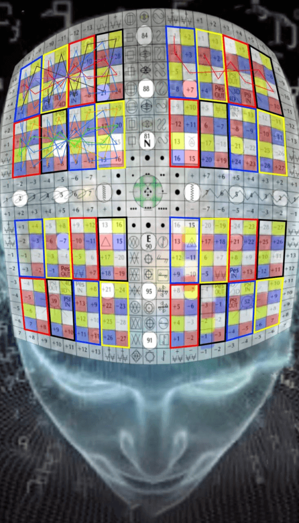 O PSI, V.16, H.20. UMB 149. (-3) Terceira magnitude do circuito coordenador supercons-ciente de quinta força do canal Beta-Beta. Sublimar e transferir os sinais internos do tempo 5D do serviço elétrico ao núcleo radial dos sentidos do Cubo Cósmico.