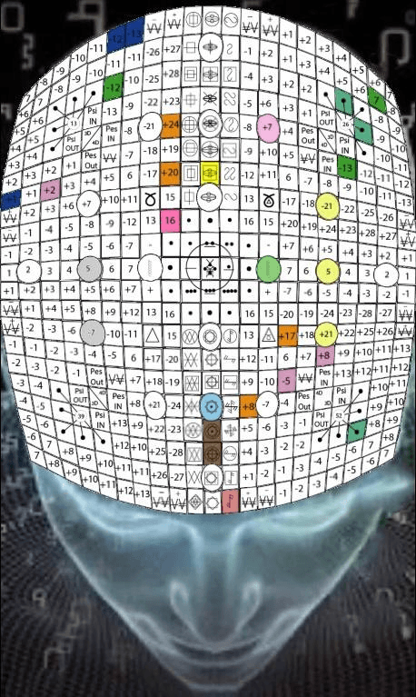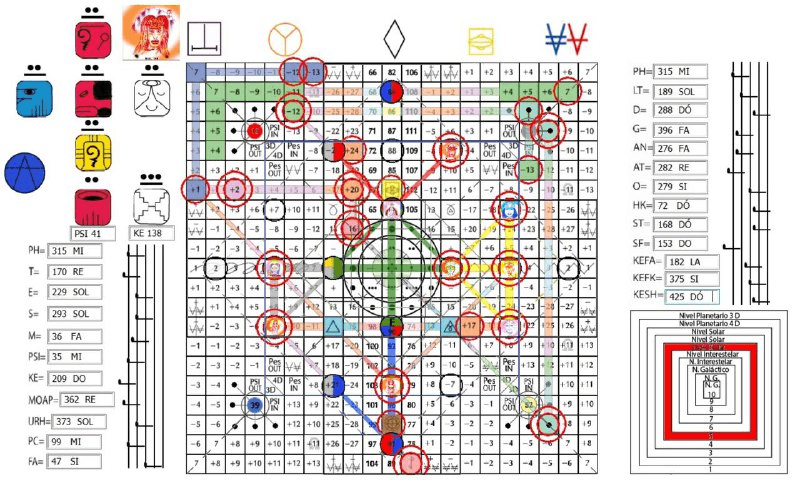 A Matriz Syncrônica, V. 9, H. 5. UMB 293. (+24) Vigésima-Quarta magnitude do fluxo do espaço externo. Ativa o hiperplasma Alfa-Alfa da Criação Cósmica (na 1ª dimensão do tempo exterior). Campo de força do samadhi profundo (1D) ativado pelo campo de força (7D) do Perceptor Holomental radializado radiosonicamente: Comando Cósmico Descendente.