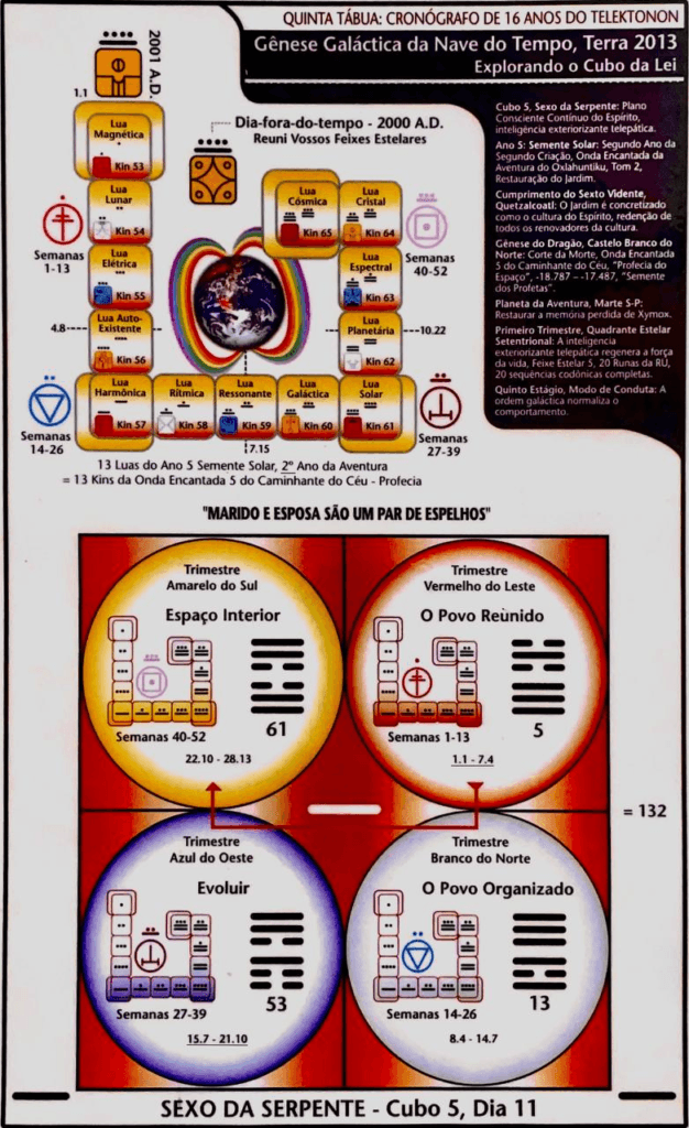 O Kin Oculto, V. 17, H. 11. UMB 279. (5) Quinta magnitude do campo hipergravitacional organizador do campo de força lumínico Duar azul neutraliza a 6ª esfera mental: consciente Subliminar/atrator do universo paralelo. Núcleo energizante central (H.11 eixo equatorial). Quinta porta de Unidade do tempo radial esquerdo. Corresponde ao Descobridor (Guerrero): Quarto Assento de Poder de Hunab Ku 21 (força centrípeta interna): Corte da Inteligência Cósmica. A Inteligência Cósmica cria a célula de luz galáctica. A inteligência é a força centrípeta da totalidade cósmica: Inteligência é luz. Saturno Solar-Profético.