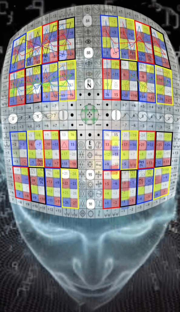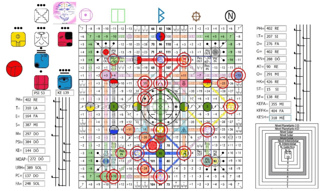 A Matriz Syncrônica, V. 9, H. 15. UMB 387. (-20) Vigésima magnitude do fluxo do espaço externo sublima o hiperplasma Alfa-Beta da Sincronização Cósmica (na 3ª dimensão do tempo exterior). Campo de força do samadhi informativo (3D) sublimado pelo campo de força do Perceptor Holomental radializado radiosônicamente (8D): Comando Harmônico Ascendente.