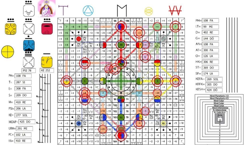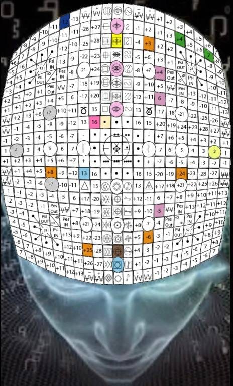 A Matriz do Tempo, V.15, H.5. UMB 287. (+4) Quarta magnitude do circuito PES 6º dimensional. Ativa a comunicação subliminal no campo de força Beta-Alfa do controle da mente superior. O controle da mente superior ativa a Quarta esfera mental: conscienteContínuo.