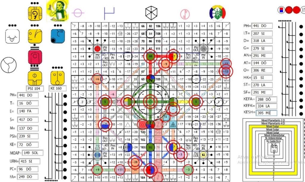 O KE da Frequência Harmônica, V. 14, H. 5. UMB 288. (+7) Sétima magnitude do fluxo do espaço externo. Ativa o hiperplasma Beta-Alfa da Ascensão Cósmica (na 2ª dimensão do tempo exterior). Campo de força do controle da mente superior (2D) ativado pelo campo de força (7D) do Perceptor Holomental radializado radiosonicamente: Comando Cósmico Descendente. Corresponde ao Iniciado da Serpiente (Serpente): Primeira Porta de Poder de Hunab Ku 21 na Corte do Avatar (UMB 291). Ativado pela carga elétrica térmico/lumínica ascendente Kum “calor da luz interior” (UMB 399). O sexo é o inicio do conhecimento. Maldek Galáctico-Kármico.