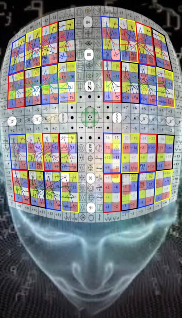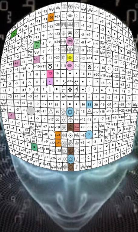 O KE da Senda do Heptal, V.5, H.19. UMB 203. Matriz do núcleo dos sentidos de quinta força. “Visão da Sincronização Cósmica” organiza e coordena o espectro psicofísico inteiro da consciência visual (interna, externa e etérica) no canal Alfa-Beta.