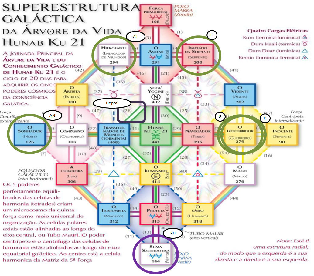 AT (KIN antípoda), V. 8, H. 5. UMB 294. (-21) Vigésima-Primeira magnitude do fluxo do espaço externo sublima o hiperplasma Alfa-Alfa da Criação Cósmica (na 1ª dimensão do tempo exterior). Campo de força do samadhi profundo (1D) sublimado pelo campo de força (7D) do Perceptor Holomental radializado radiosonicamente: Comando Cósmico Descendente. Corresponde ao Hierofante (Enlaçador de Mundos): Primeira Fonte de Poder de Hunab Ku 21 na Corte do Avatar (UMB 291). Ativado pela carga térmica ascendente Dum Kuali (UMB 405) “calor primario”. A morte é a fonte do conhecimento. Marte Galáctico-Kármico.