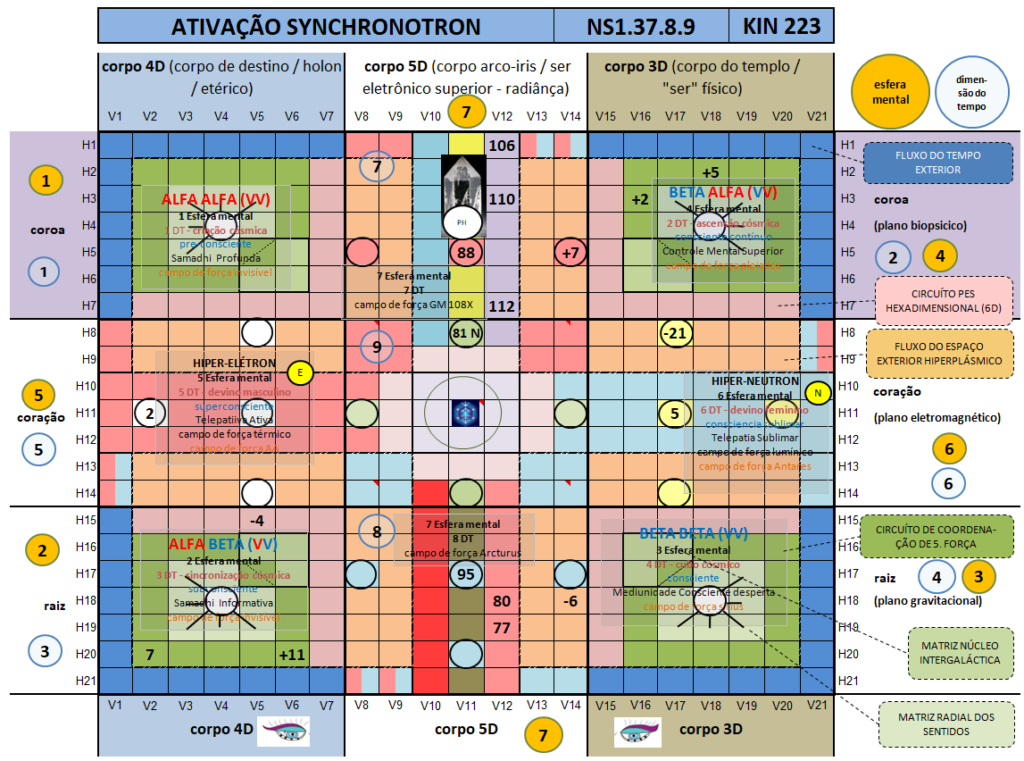 T (tempo), V.6, H.20. UMB 139. (+11) Décima primeira magnitude do circuito coordenador superconsciente de quinta força do canal Alfa-Beta. Ativar e transferir os sinais internos do tempo 5D da liberação Espectral ao núcleo radial dos sentidos da Sincronização Cósmica.