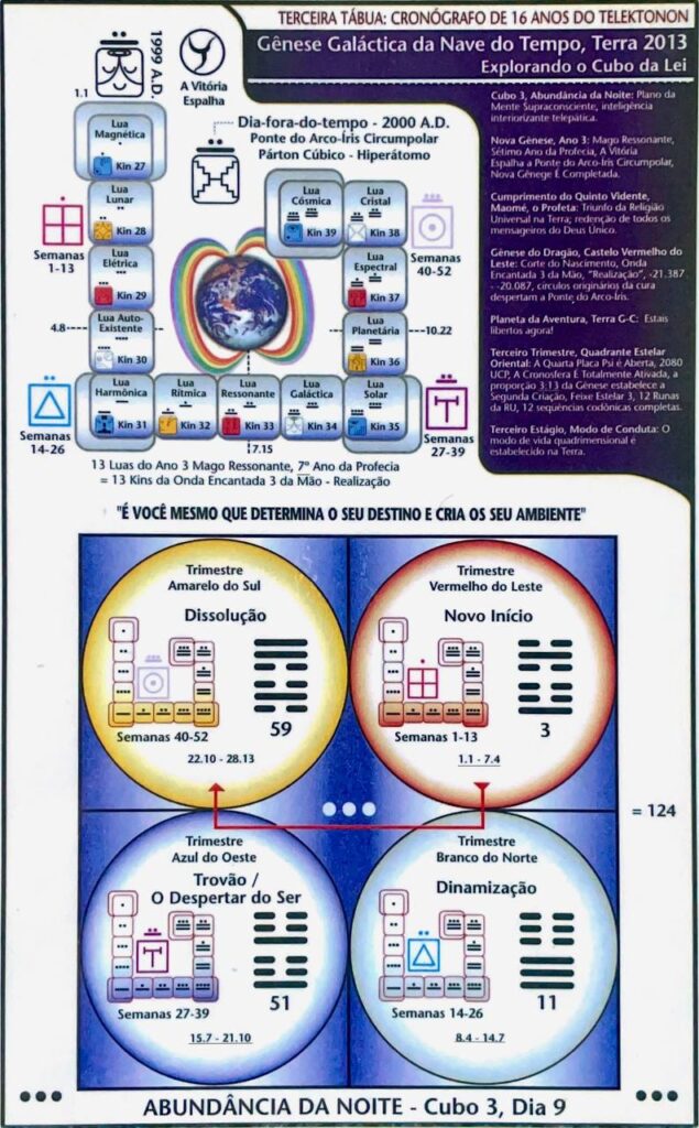 3.10 O número precede o pensamento, todas as manifestações físicas são produzidas a partir da matriz do número. A cosmologia da Lei do Tempo é em última instancia puro número governado pela ordem matemática de 2(0) – progressão binária – por exemplo, o DNA tem 64 códons (1-2-4-8-16-32-64).