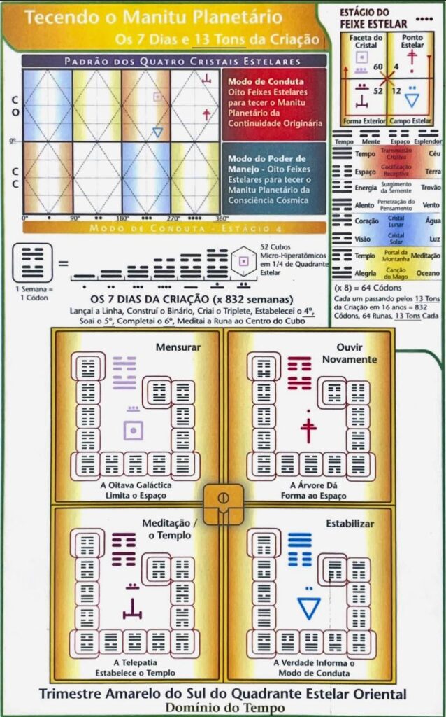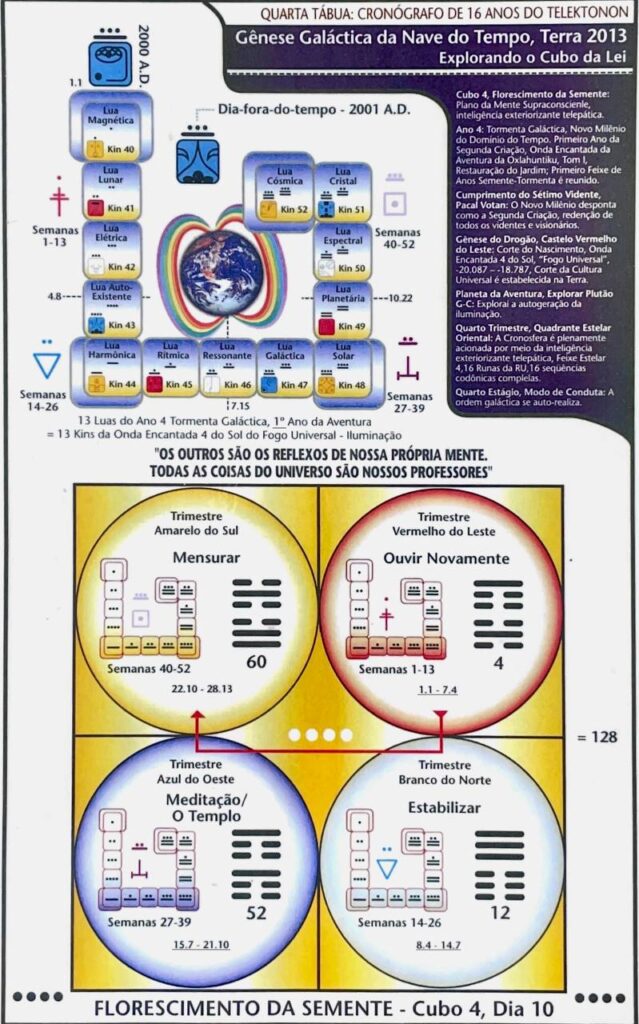 4.9 Cada Matriz do Cubo 441 contem quatro Dimensões do Tempo Exterior que coordenam a realidade fenomênico relativa ocorrendo em quatro estágios sequenciais simultâneos: 1) Criação Cósmica 2) Ascensão Cósmica, 3) Sincronização Cósmica e 4) Cubo Cósmico.