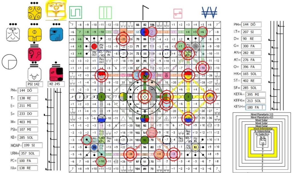 KE (KIN equivalente), V.17, H.5. UMB 285. Alternador de fase 3D-4D/4D-3D do canal do núcleo intergaláctico Beta-Alfa. Coordena as funções PES superiores com a informação Psi e ativa plasmicamente o núcleo radial dos sentidos inteiro da Ascensão Cósmica. Quinta porta da segunda diagonal de Unidade.