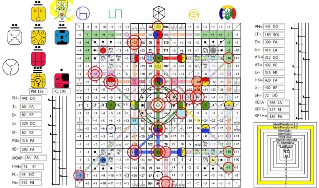 PH,V. 11, H. 11. UMB 441. 9ª Estação da Arca: Noé, Pacal (e Valum) Votan—arquetipo dos mensageiros do tempo e do sistema do Cubo. Canal 11º dimensional a partir do qual se originam a totalidade dos padrões do sistema de pensamento e vida Galáctica do cubo. A partir daqui para o corpo calloso flui o hiperplasma concentrado radialmente Sirio B-52/Elemento 113. Hunab Ku 21: Mago do Infinito. Matriz central do canal do universo, a luz-fotón-ciclón do poder de quinta força. Assento da Unidade da totalidade. A partir do portal de Hunab Ku 21 é gerado o hiperplasma Sirio B-52/Elemento 113 que estimula os estados de consciência e percepção radial e ativa as forças centrípeta e centrífuga como as energias cósmicas primarias. 11ª Porta de Unidade: Omnidirecionalidade.