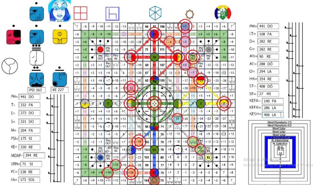 PH (porta heptal), V. 11, H. 11. UMB 441. 9ª Estação da Arca: Noé, Pacal (e Valum) Votan—arquetipo dos mensageiros do tempo e do sistema do Cubo. Canal 11º dimensional a partir do qual se originam a totalidade dos padrões do sistema de pensamento e vida Galáctica do cubo. A partir daqui para o corpo calloso flui o hiperplasma concentrado radialmente Sirio B-52/Elemento 113. Hunab Ku 21: Mago do Infinito. Matriz central do canal do universo, a luz-fotón-ciclón do poder de quinta força. Assento da Unidade da totalidade. A partir do portal de Hunab Ku 21 é gerado o hiperplasma Sirio B-52/Elemento 113 que estimula os estados de consciência e percepção radial e ativa as forças centrípeta e centrífuga como as energias cósmicas primarias. 11ª Porta de Unidade: Omnidirecionalidade.