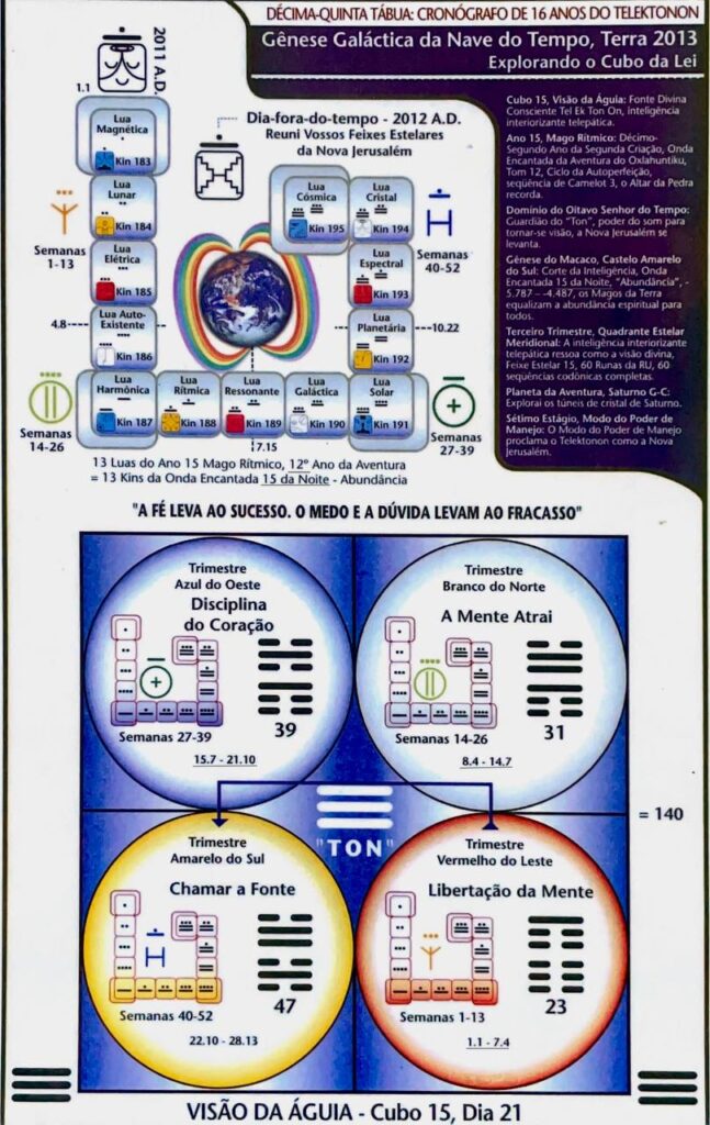 D (KIN destino), V. 17, H. 8. UMB 282. (-21) Vigésima-Primeira magnitude do fluxo do espaço externo sublima o hiperplasma Beta-Alfa da Ascensão Cósmica (na 2ª dimensão do tempo exterior). Campo de força do controle da mente superior (2D) sublimado pelo campo de força lumínico Duar azul do consciente Subliminar (6D). Corresponde ao Vidente (Águia): Quarta Fonte de Poder de Hunab Ku 21 na Corte do Descobridor (UMB 279). Ativado pela linha de força elétrica térmico-lumínica Kum “calor da luz interior” (UMB 399). A visão é a fonte da inteligência. Júpiter Solar-Profético.