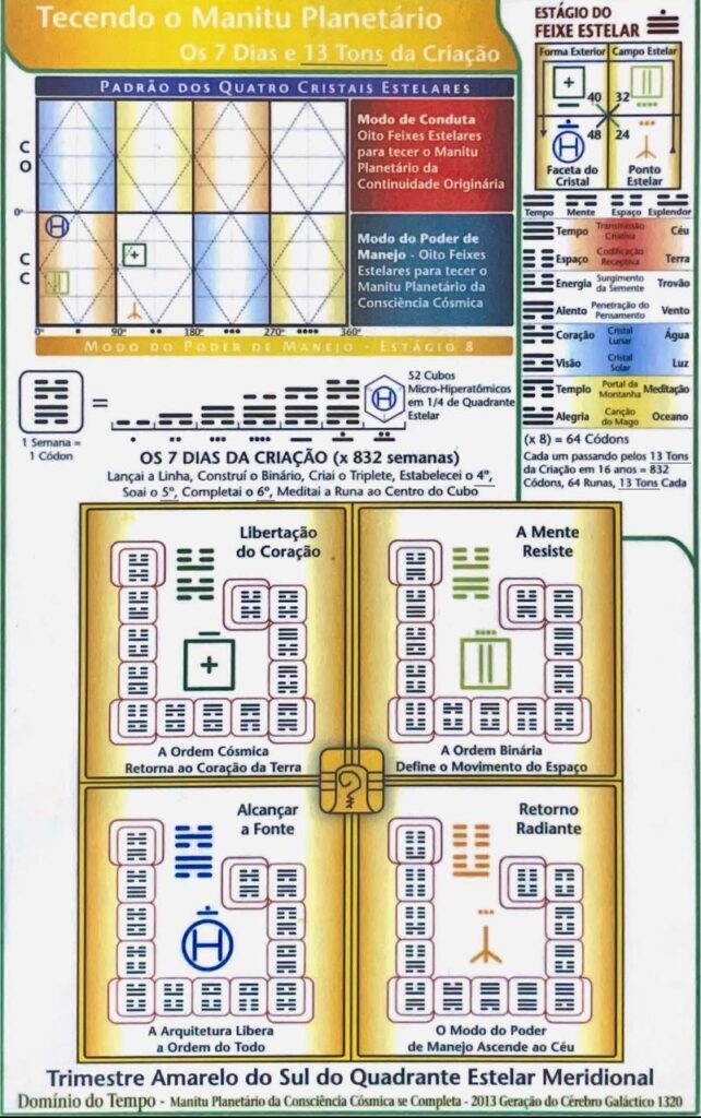Hoje Guerreiro Lunar Amarelo Kin 236, segundo Kin da onda encantada da Águia Magnética Azul, terceira onda encantada do Castelo Verde Central, quinto Castelo do Tzolkin, estamos no Tzolkin 52, no anel 37, anel da Tormenta Rítmica Azul, na oitava lua deste anel, Lua Galáctica do Falcão, (1.37.8.22), Heptal 32, amarelo madura, Plasma Dali, Primeira Porta do Heptal, ativamos a Primeira Esfera Mental com o Hiperplasma Alfa Alfa, ativação Cubica na parte superior do Cubo, Circuito 7 SP no Hipercubo, fluxos interplanetários, O Circuito 7, o traçado cristal circundando a Nona Dimensão do Tempo, coordena o acesso transcendente do registro Alma/Akásico, Arquétipos o Sonhador e o Descobridor de Caminhos, acessa o Conselho Saturnino da Inteligência Sonhadora,