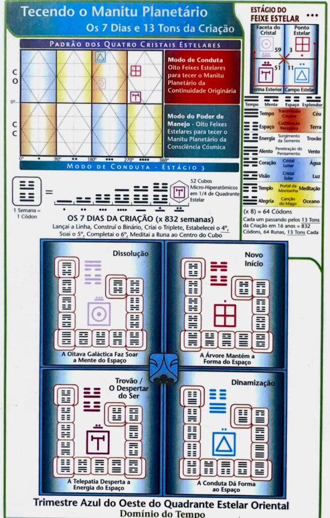 11.12 A nona dimensão do tempo interior é coordenada pelo Conselho Estelar Siriano, que radializa as ordens do tempo em uma única lente da totalidade. Através desta lente múltiplos reflexos são reunidos e comunicados como frequências telepáticas diárias, codificadas na Matriz 441 e incorporadas pelo Perceptor Holomental.