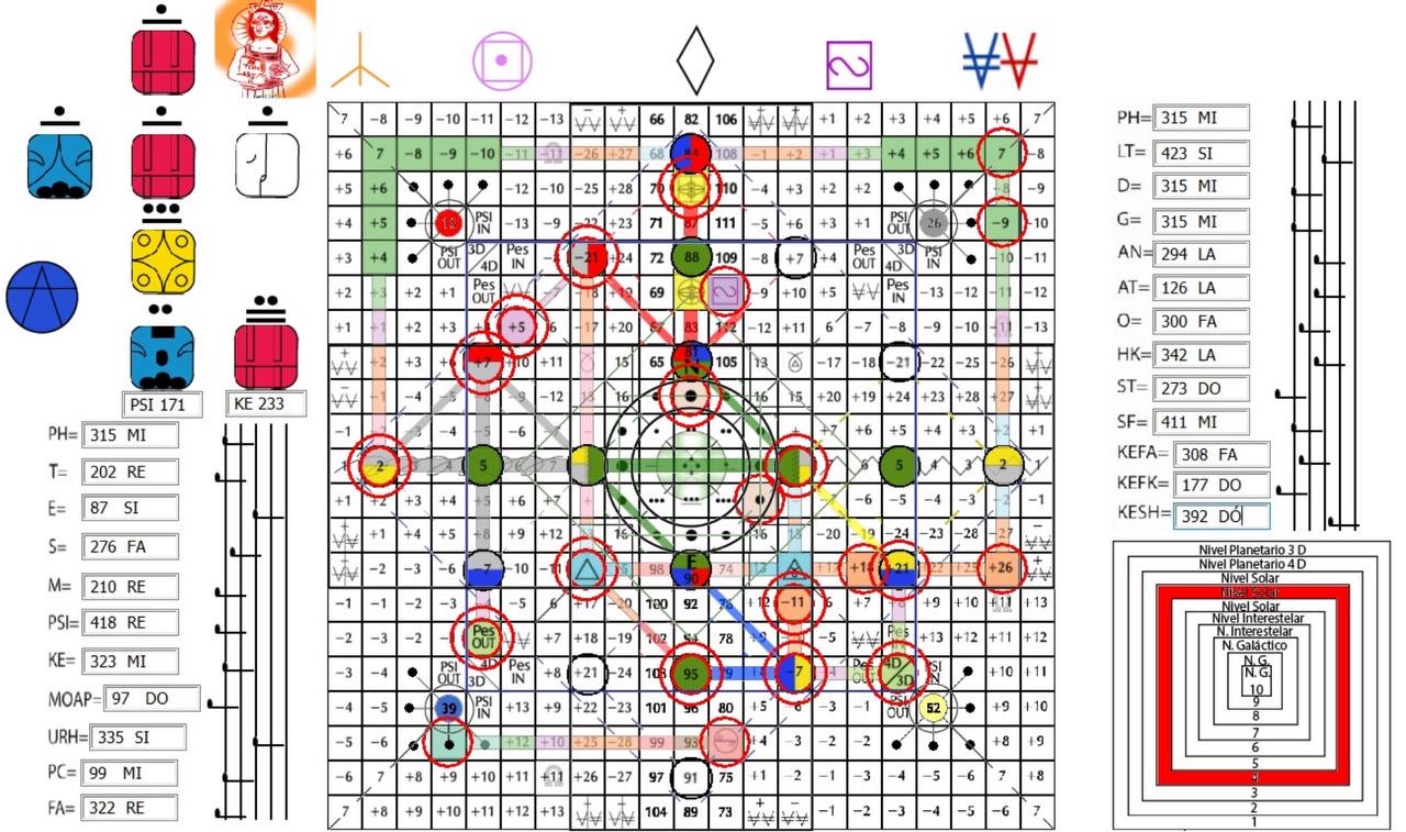 O KE da Senda do Heptal, V. 14, H. 15. UMB 392. (-11) Décima primeira magnitude do fluxo do espaço externo sublima o hiperplasma Beta-Beta do Cubo Cósmico (na 4ª dimensão do tempo exterior). Campo de força da mediunidade do consciente desperto (4D) sublimado pelo campo de força do Perceptor Holomental radializado radiossonicamente (8D): Comando Harmônico Ascendente.