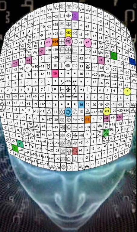 O PSI Crono, V. 13, H. 13. UMB 417. (16) Unidade coordenadora Mestra do partón-hiperplásmico da célula do hiperpartón Kemio, luz e calor interior. Coordena o 4º quadrante: o fluxo do espaço externo do hiperplasma Beta-Beta do Cubo Cósmico. Beta-Beta interatúa com Kemio e neutraliza o campo de força da mediunidade do consciente desperto. Nona porta da Primeira diagonal de Unidade.