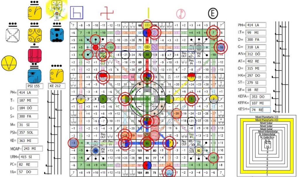 A Matriz do Espaço, V.4, H.3. UMB 184. Matriz do núcleo dos sentidos de quinta força. “Ouvido da Criação Cósmica” organiza e coordena o espectro psicofísico inteiro da consciência auditiva (interna, externa e etérica) o canal Alfa-Alfa.