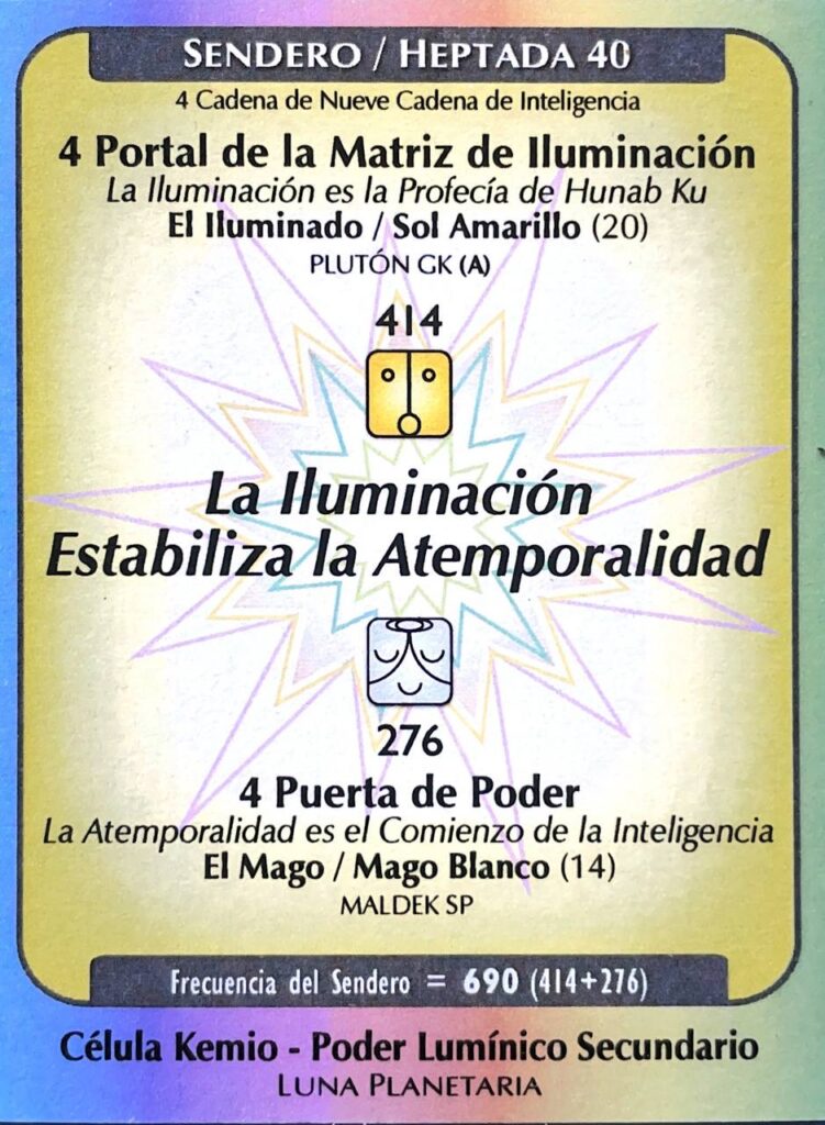 O KE da Senda do Heptal, Kin 170, V. 13, H. 10. UMB 420. Guardião de quinta força das Estações da Arca. Coexiste com o arquetipo do terma/tertón (descobridor do tesouro oculto) com o campo de força lumínico Duar azul Ativado.