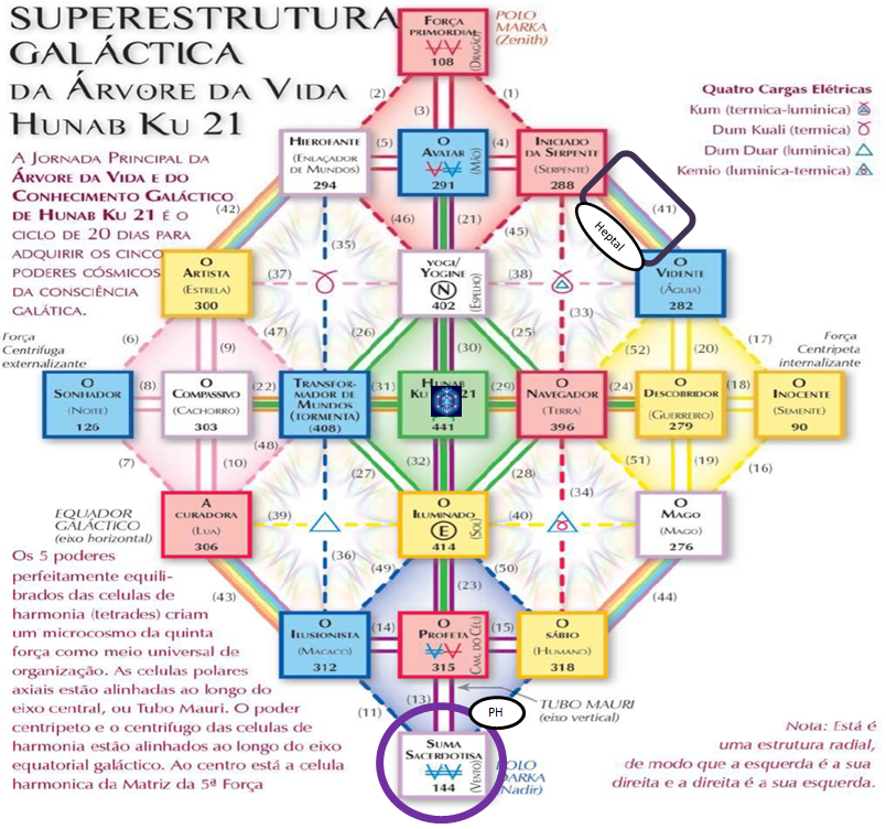 PH (porta heptal), V. 11, H. 20. UMB 144. Runa Harmônica UR 91: O Todo da Arte Galáctica Define o Espaço. 4ª Oitava: Oitava do Todo da Arte Galáctica. Runa da Fila 12. Segunda porta de Unidade do tempo vertical ascendente. Corresponde a Suma Sacerdotisa (Vento): Segunda Porta de luz de Hunab Ku 21. Abre a Porta da luz Universal da Corte do Profeta (UMB 315) onde é armazenada a profecía cósmica. A Suma Sacerdotisa ascende ao Polo Sul (Darka) como Alento Cósmico e ascende como profecía. Gera o hiperplasma Beta-Beta estimulando a mediunidade do consciente desperto e sela o plasma radial Gama. Abre a Terceira porta do heptal: A Porta do Misterio. Urano Solar-Profético.