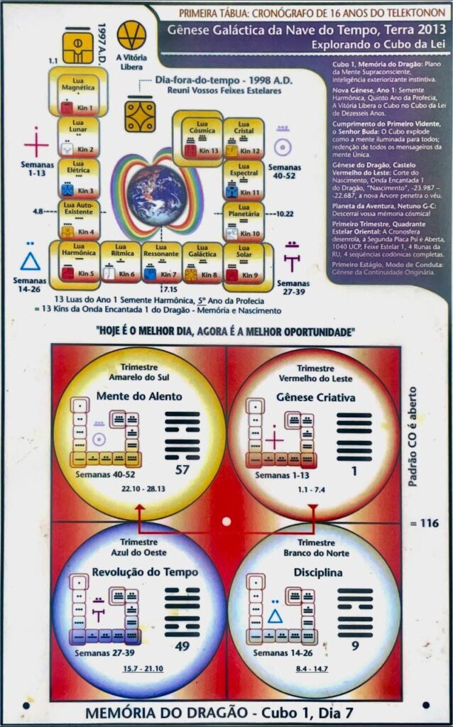 5.9 Na Matriz do Tempo (no centro das 9 unidades do núcleo radial dos sentidos) estão as “quatro unidades mestras do tempo”, localizadas nas Quatro Dimensões do Tempo Exterior: Criação Cósmica (13), UMB 245, Ascensão Cósmica (26), UMB 231, Sincronização Cósmica (39), UMB 259, e Cubo Cósmico (52), UMB 217.