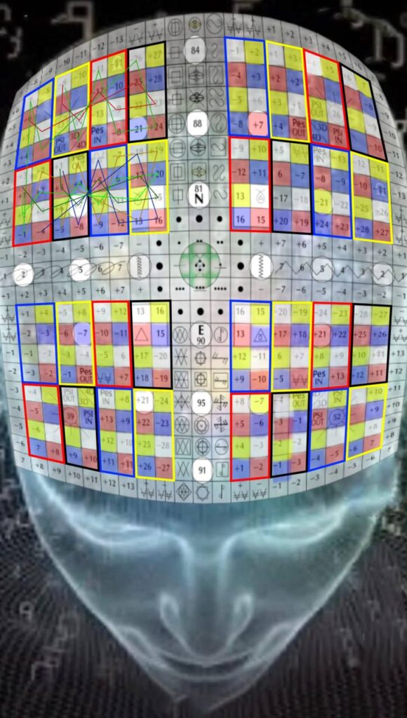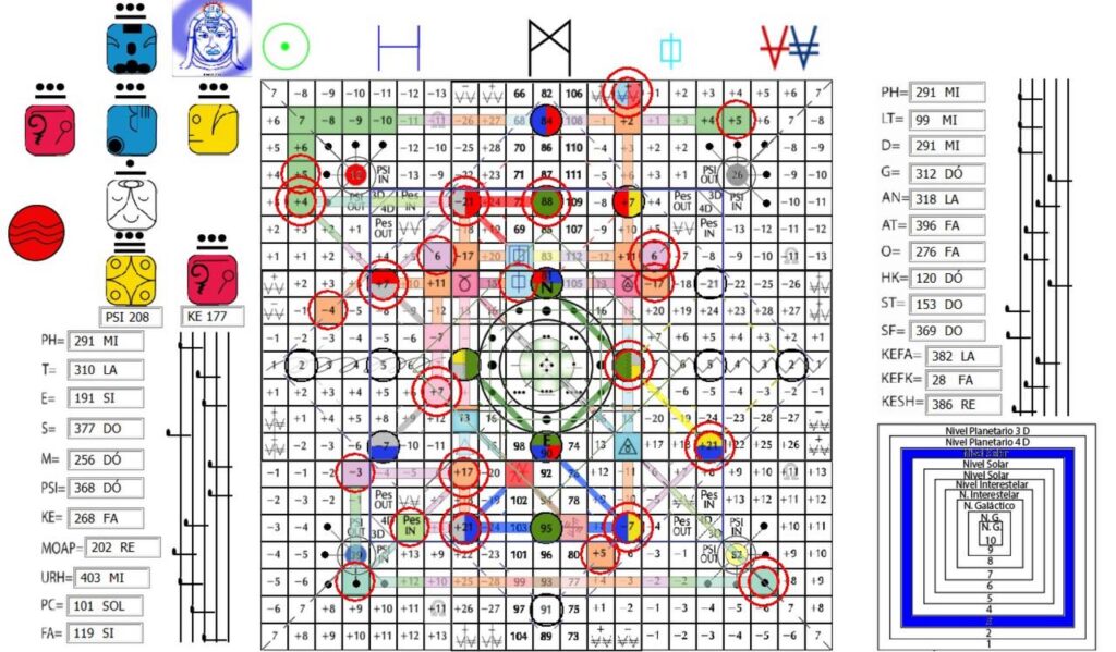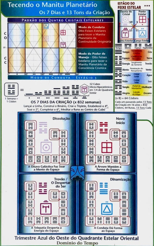 7.9 O padrão de simetria binária inversa da matriz 13:20 estendida sobre quatro placas ou funções de tempo estabelece o banco psi como o registro holonômico do Cérebro Galáctico codificado completamente na escala planetária. Como resultado, o banco psi contém o complexo completo do potencial vetor do tempo criando as Harmônicas Celestiais, acessíveis através dos códigos do Encantamento do Sonho