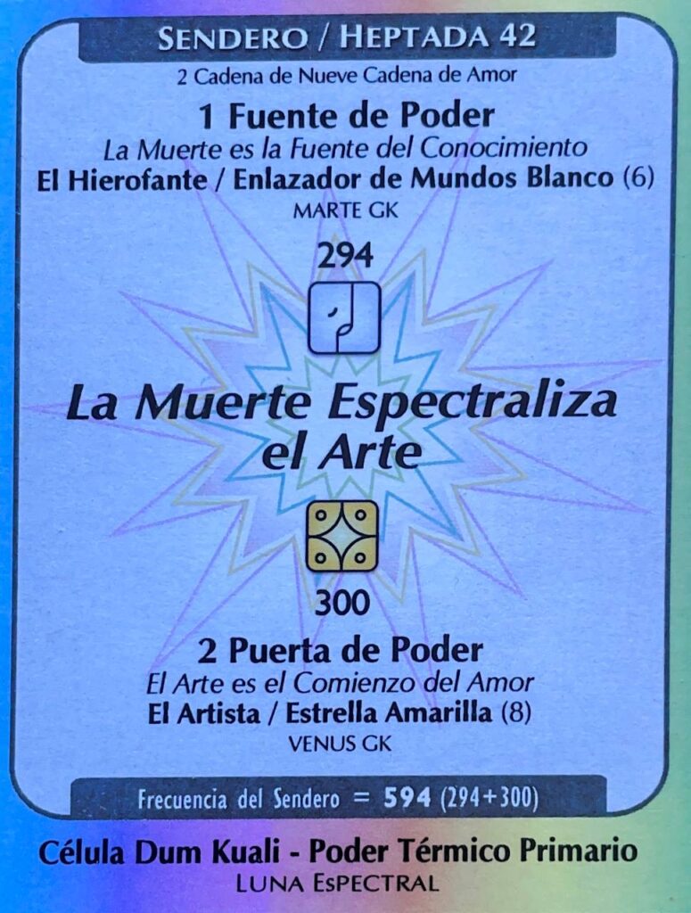 O KE da Senda do Heptal, Kin 74, V. 8, H. 15. UMB 386. (+17) Décima sétima magnitude do fluxo do espaço externo. Ativa o hiperplasma Alfa-Beta da Sincronização Cósmica (na 3ª dimensão do tempo exterior). Campo de força do samadhi informativo (3D) ativado pelo campo de força do Perceptor Holomental radializado radiosônicamente (8D): Comando Harmônico Ascendente.