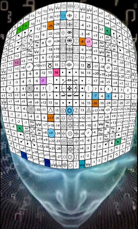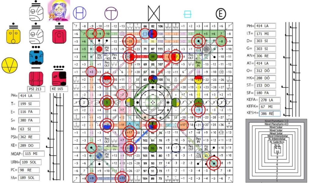 A Matriz do Tempo, V.3, H.17. UMB 199. Matriz do núcleo dos sentidos de quinta força. “Tato da Sincronização Cósmica” organiza e coordena o espectro psicofísico inteiro da consciência tátil (interna, externa e etérica) no canal Alfa-Beta.