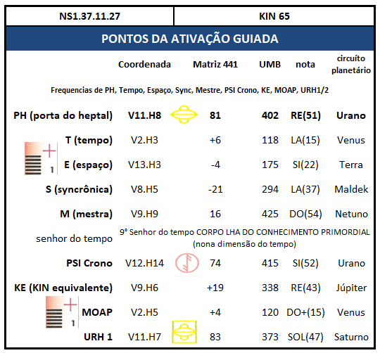 Hoje é NS1.37.11.27, KIN 65, serpente cósmica vermelha. 13o KIN  da onda encantada do(a) caminhante do céu, 5aonda do Tzolkin, 1a onda do castelo branco. castelo 2 do Tzolkin 53 do caminhante do céu magnético vermelho. anel 37 da tormenta rítmica azul. 11a lua deste anel, lua espectral da serpente. heptal 44 amarelo, o poder amadurece o fruto. Plasma LIMI, 6a porta do heptal, ativamos a 6a esfera mental com o  hiperplasma HIPERNEUTRON. ativação cúbica no lado esquerdo do cubo. circuíto 5 GK (galático karmico) no hipercubo, fluxos interplanetários: o Circuito 5 contém o “acorde perdido” e a frequência harmônica das 6 oitavas(48=6×8) coordena a informação sensorial/extra-sensorial pentadimensional, Arquétipos o  Iniciado Serpente e o Mago, acessa o Conselho Maldekiano do Sexo Atemporal.