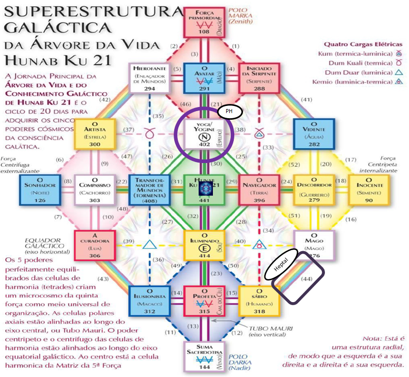 PH (porta heptal), V. 11, H. 8. UMB 402. Runa Harmônica UR 81: A Radiogenesis Estabelece o Todo da Vida Galáctica. 3ª Oitava: Oitava do Todo da Vida Galáctica. Runa da Fila 11. Oitava porta de Unidade do tempo vertical descendente. Corresponde ao Yogue/ni (Espelho). Segundo Porta da Matriz de Hunab Ku 21. Yogue/ni mede a força da luz-fotón-ciclón de Hunab Ku com a linha de força centrífuga térmica Dum Kuali e a linha de força centrípeta térmica-lumínica Kum. A partir daqui é gerado o Hiperneutron que estimula os estados subliminais da consciência. Ativa a célula harmônica polar norte do polo Marka com o electron mental e sela o plasma radial: Limi. Abre a sexta porta do heptal: a porta da Transcêndencia. Neptuno Solar-Profético.