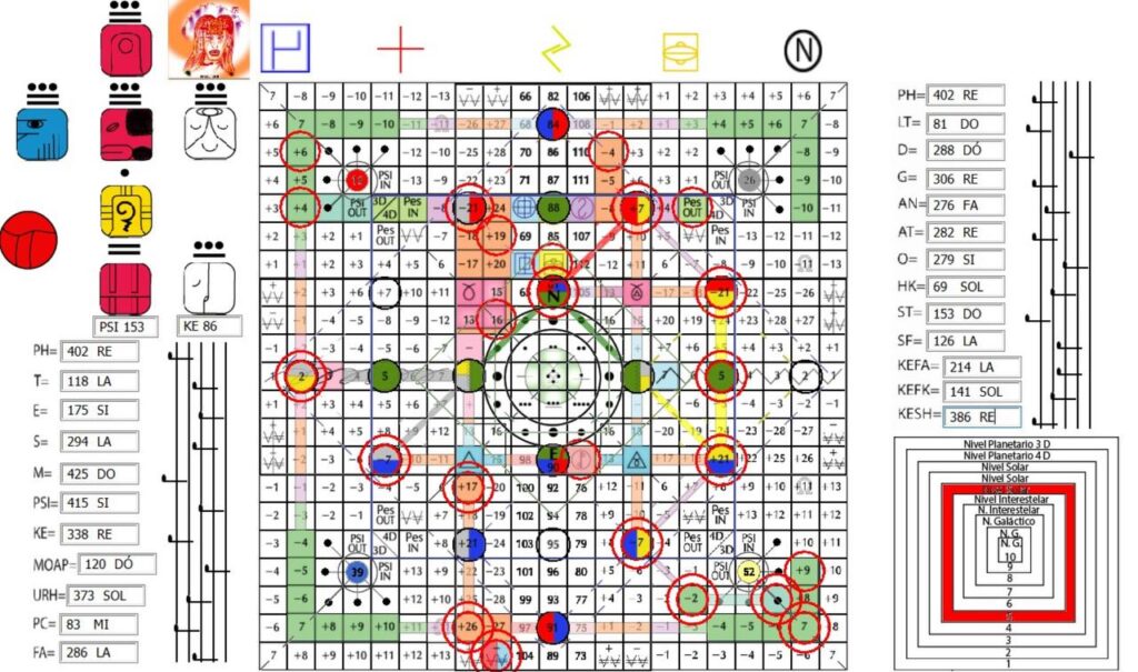 HK (Hunab Ku), V. 9, H. 21. UMB 69. + Terminal Alfa-Beta sublima o fluxo do espaço externo hiperplásmico da Sincronização Cósmica (Terceira dimensão do tempo). Campo de força do samadhi informativo ativado pelo campo de força do Perceptor Holomental radializado radiosônicamente (8D): Comando Harmônico Ascendente.