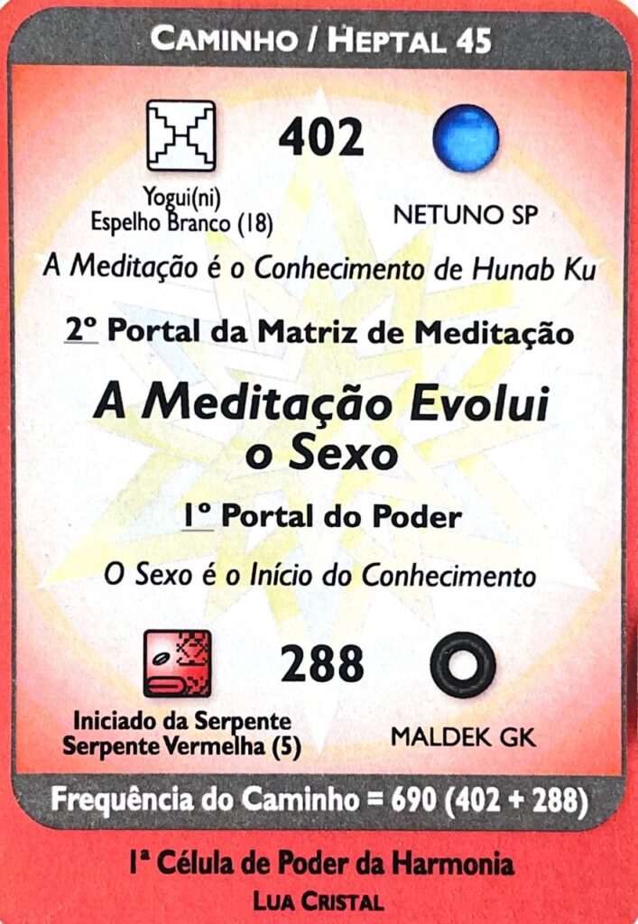 A Matriz Syncrônica, V. 8, H. 10. UMB 407. (–) Unidade sublimadora do Terminal eletroativador Kuali vermelho (tempo radial direito). Sublima o campo de força térmico Kuali vermelho e a corrente elétrica azul Ascendente na Nona Dimensão do Tempo (Núcleo do Tempo Interior), Sétima esfera mental: Perceptor Holomental.