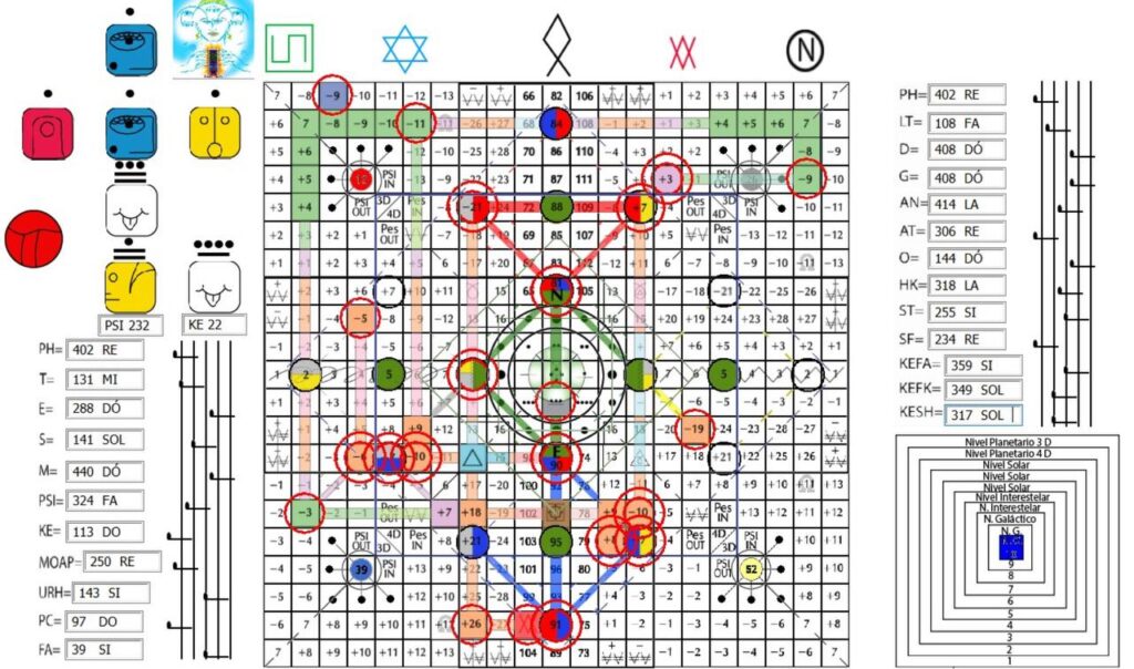 ST (senda do tollan), V.4, H.14. UMB 255. (-6) Sexta magnitude do fluxo do espaço externo sublima o hiperplasma Alfa-Beta da Sincronização Cósmica (na 3ª dimensão do tempo exterior). Campo de Força Térmico Kuali de 5D. Sf (frequencia sendas), V.15, H.4. UMB 234. (+3) Terceira magnitude do circuito PES 6º dimensional ativa a comunicação subliminal no campo de força Beta-Alfa do controle da mente superior. O controle da mente superior ativa a Quarta esfera mental: consciente Contínuo.