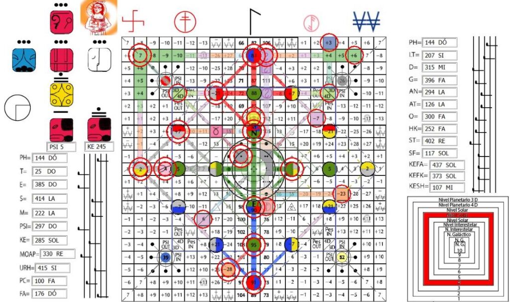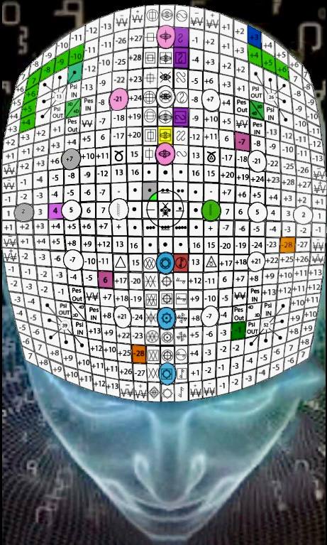 O PSI Crono, V.5, H.5. UMB 297. Alternador de fase 3D-4D/4D-3D do canal do núcleo intergaláctico Alfa-Alfa. Coordena as funções superiores PES com a informação PSI e ativa plásmicamente o núcleo radial dos sentidos inteiro da Criação Cósmica. Quinta porta da terceira diagonal de Unidade.