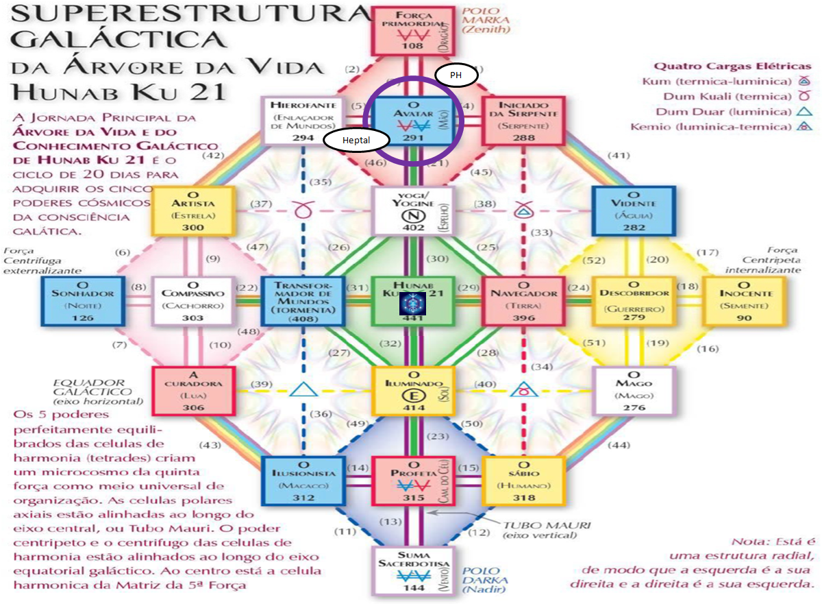 O KE da Senda do Heptal, Kin 65, V. 8, H. 5. UMB 294. (-21) Vigésima-Primeira magnitude do fluxo do espaço externo sublima o hiperplasma Alfa-Alfa da Criação Cósmica (na 1ª dimensão do tempo exterior). Campo de força do samadhi profundo (1D) sublimado pelo campo de força (7D) do Perceptor Holomental radializado radiosonicamente: