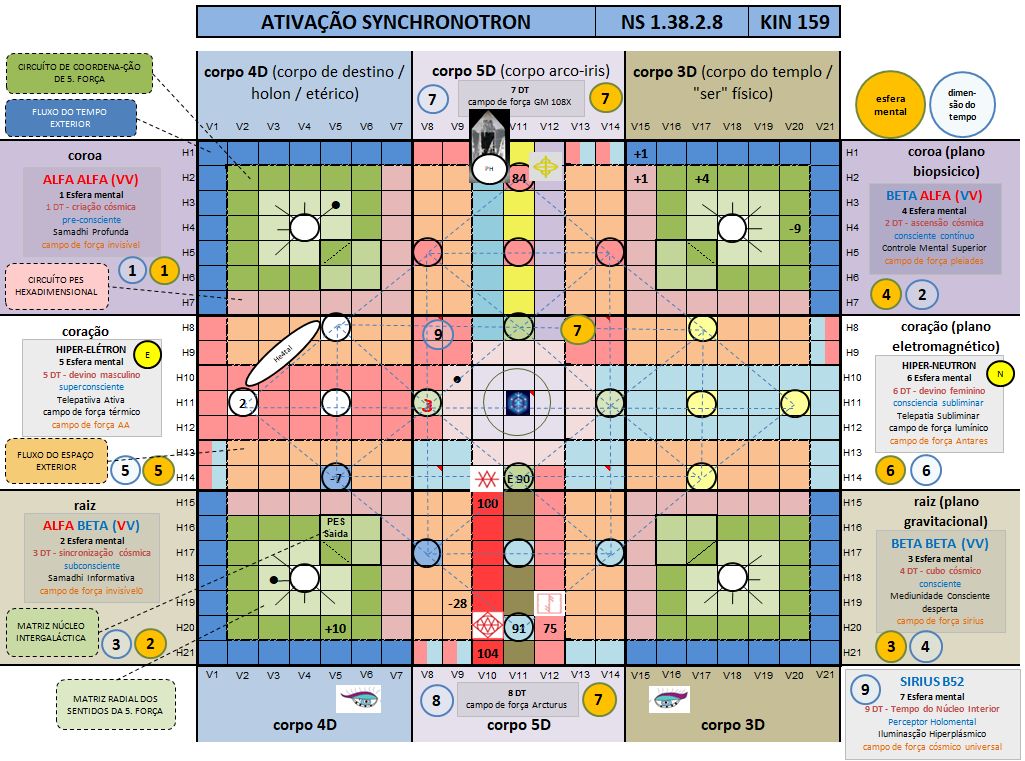 LT (lente do tempo), V. 9, H. 19. UMB 207. (-28) Vigésima-Oitava magnitude do Fluxo do espaço externo sublima o hiperplasma Alfa-Beta da Sincronização Cósmica (na 3ª dimensão do tempo exterior). Campo de Campo de força do samadhi informativo (3D) sublimado pelo campo de força do Perceptor Holomental radializado radiosônicamente (8D): Comando Harmônico Ascendente.