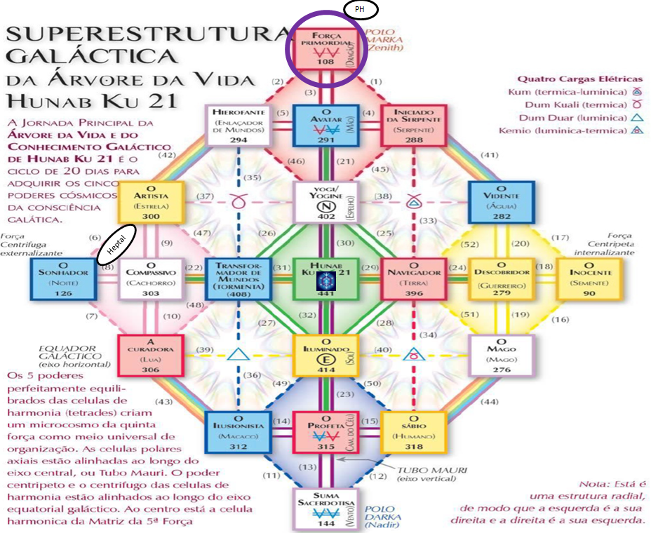 PH (porta heptal), V. 11, H. 2. UMB 108. Runa Harmônica UR 84: O Todo da Vida Galáctica Torna-se Meio de Transmisão. 3ª Oitava: Oitava do Todo de Vida Galáctica. Runa da Fila 11. Segunda porta de Unidade do tempo vertical descendente. Corresponde a Força Primordial (Dragão): Primeira Porta de luz de Hunab Ku 21. Abre a Porta da luz Universal da Corte do Avatar (UMB 291) onde está armazenado o conhecimento cósmico. A Força Primordial a partir do Polo Norte (Marka) como Ser Cósmico, evoluindo para todas as formas de direções e Manifestações. Gera o hiperplasma Alfa-Alfa estimulando o samadhi profundo e sela o plasma radial Dali. Abre a Primeira porta do heptal: Porta do Trono. Neptuno Galáctico-Kármico.