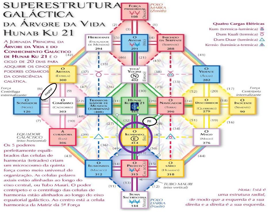 PH (porta do heptal), V. 11, H. 14. UMB 414. Runa Harmônica UR 90: O Todo da Arte Galáctica é Definida pelo Tempo. 4ªOitava: Oitava do Todo da Arte Galáctico. Runa da Fila 12. Oitava porta de Unidade do tempo vertical ascendente. Corresponde ao Iluminado (Sol): Quarto Portal da Matriz de Hunab Ku 21. O Sol mede a força da luz-fotón-ciclón de Hunab Ku com a linha de força centrípeta lumínica Dum Duar e a linha de força lumínico-térmica centrípeta de Kemio. A partir daqui é gerado Hiperelectron que estimula os estados da mente superconsciente. Ativa a célula de harmônia polar