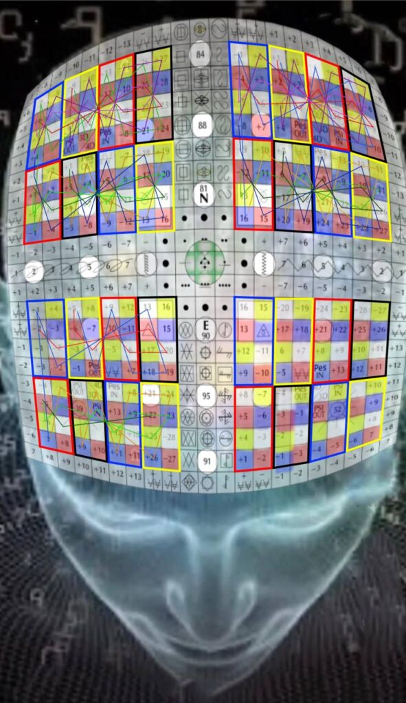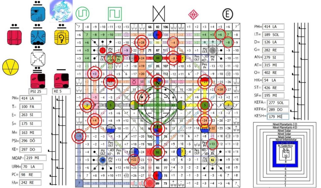 HK (Hunab Ku), V.1, H.14. UMB 54. – Gerador Alfa-Beta sublima o Fluxo do espaço externo hiperplásmico da Sincronização Cósmica (Terceira dimensão do tempo). O campo de força superconsciente térmico Kuali vermelho sublima campo de força do samadhi informativo.
