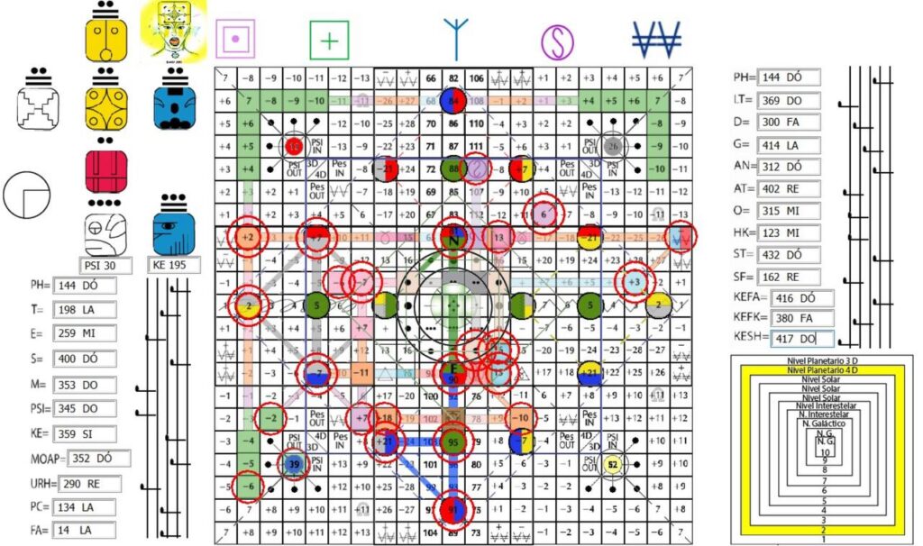 O KE, V. 14, H. 16. UMB 359. (-10) Décima magnitude do fluxo do espaço externo sublima o hiperplasma Beta-Beta do Cubo Cósmico (na 4ª dimensão do tempo exterior). Campo de força da mediunidade do consciente desperto (4D) sublimado pelo campo de força do Perceptor Holomental radializado radiosônicamente (8D): Comando Harmônico Ascendente.